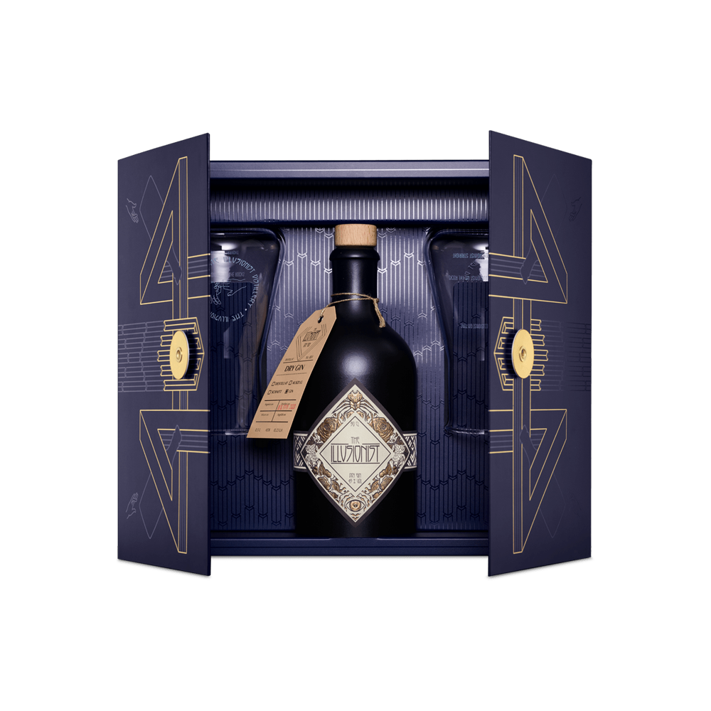 500ml, 45% Vol. & 2 x Illusionist Erlenmeyerkolben Entschlüsseln Sie das Geheimnis des Illusionist Dry Gin mit dieser perfekten Geschenkbox, dem Mysterium. Die hochwertige Box mit unserem einzigartigen optischen Illusionsdesign...