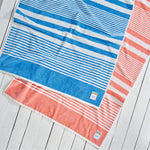 The beach towel has an oversize of 90 x 180 cm and is also suitable as a base for forest bathing or a yoga session. The towel weighs 810 grams and is produced in Portugal under fair conditions.