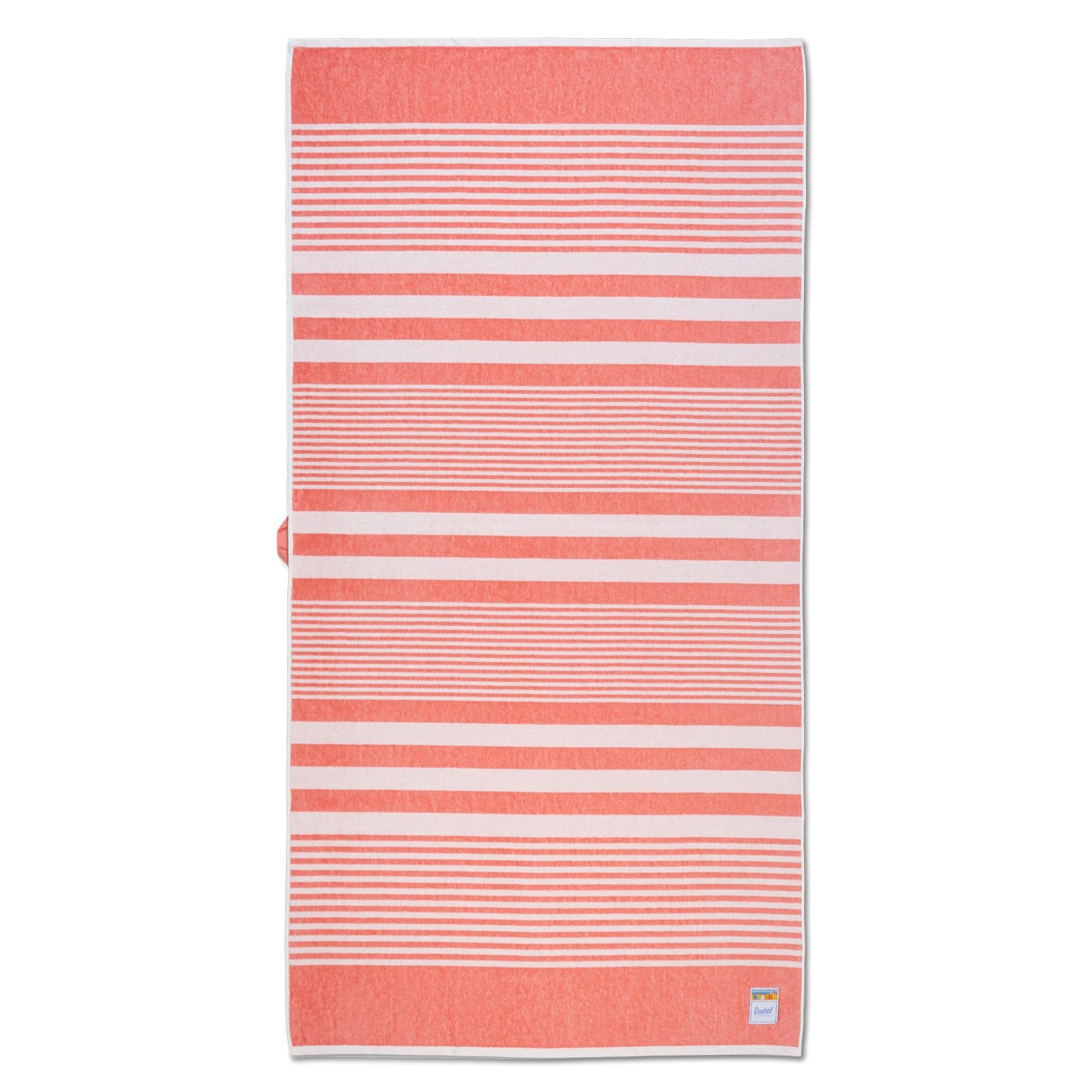 The underside of double-twisted loops is particularly robust, perfect for your next trip to the beach. A fixed hanger on the longer side and the color-contrasting ends make the beach towel your new favorite.